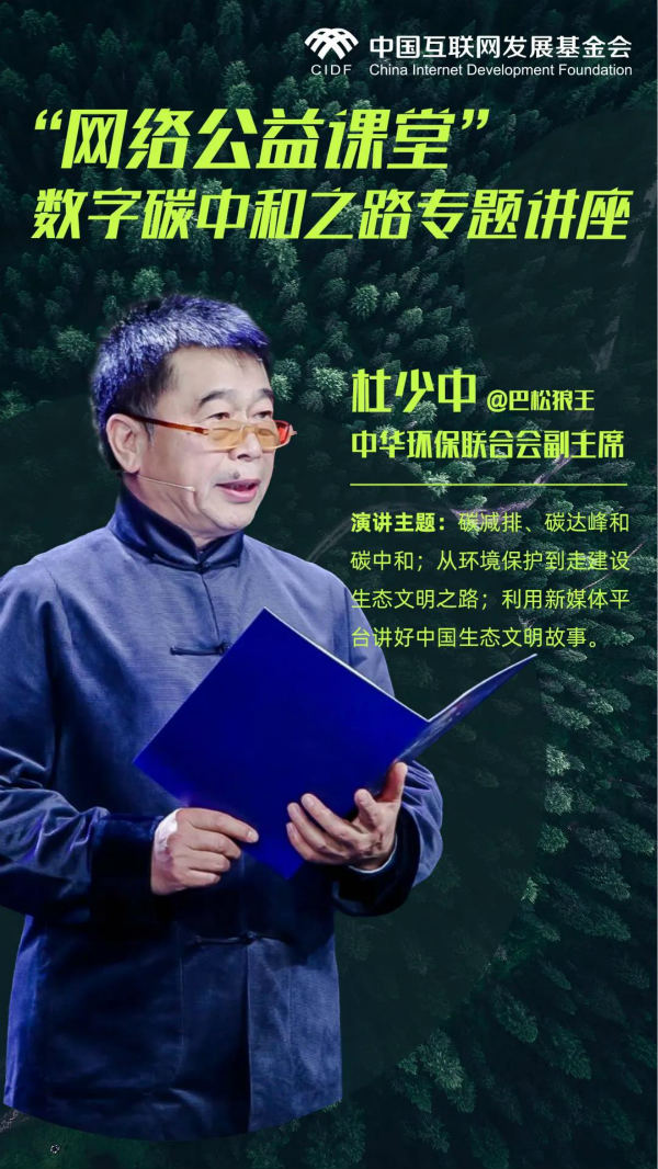 2021年4月9日,网络公益课堂:数字碳中和之路专题讲座在中国互联网发展基金会举办。本次讲座邀请中华环保联合会副主席杜少中(网名“巴松狼王”)主讲。…